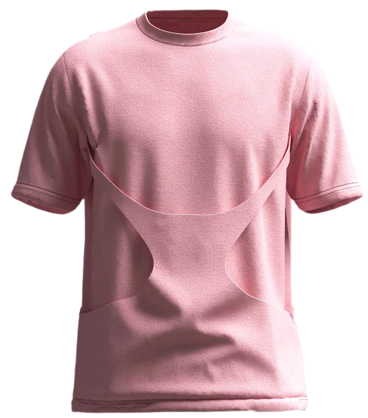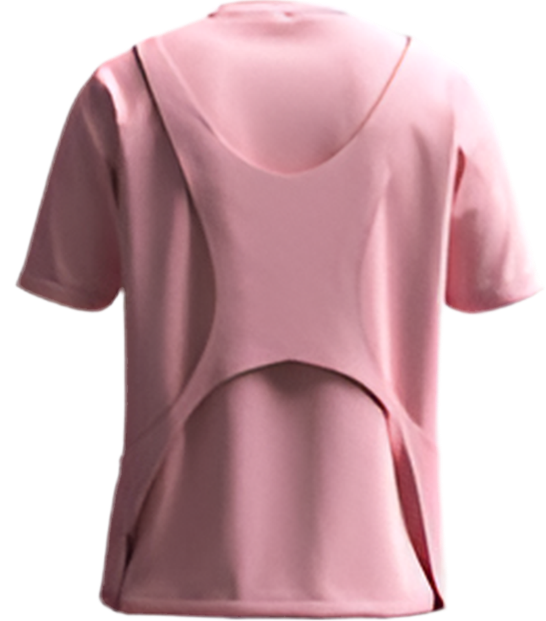 Short-sleeve cotton jersey T-shirt in soft pink. Features paneled construction with sculptural cut-out overlay at front and back, creating an architectural silhouette. Crewneck collar. Tonal stitching. Straight hem.