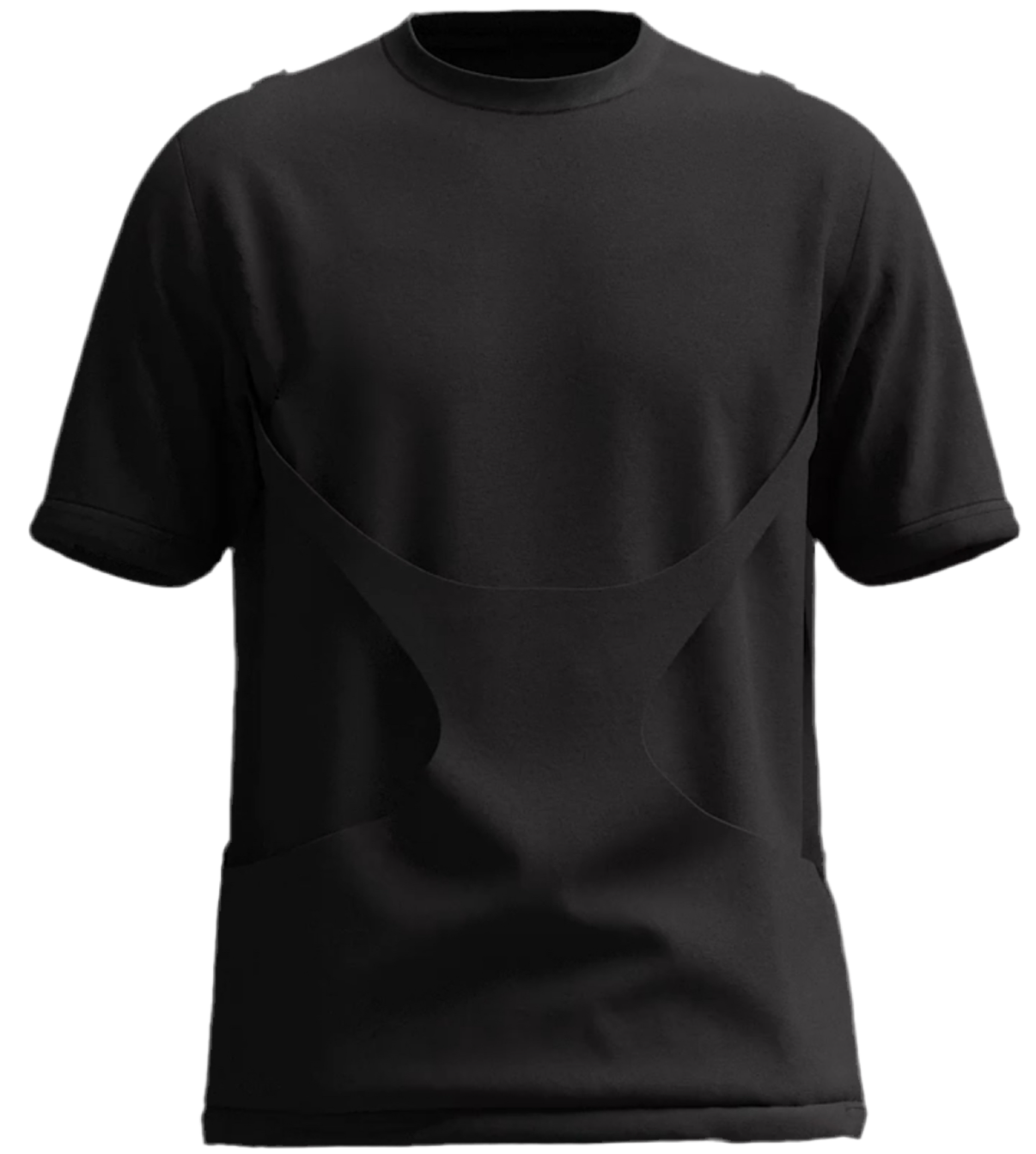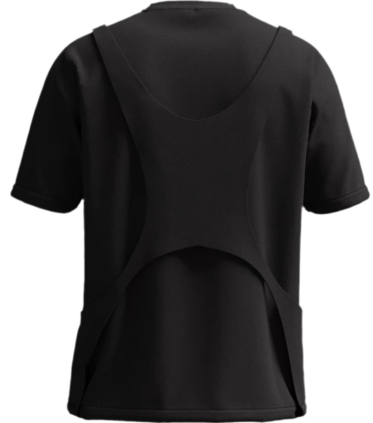 Short-sleeve cotton jersey T-shirt in Black. Features paneled construction with sculptural cut-out overlay at front and back, creating an architectural silhouette. Crewneck collar. Tonal stitching. Straight hem.